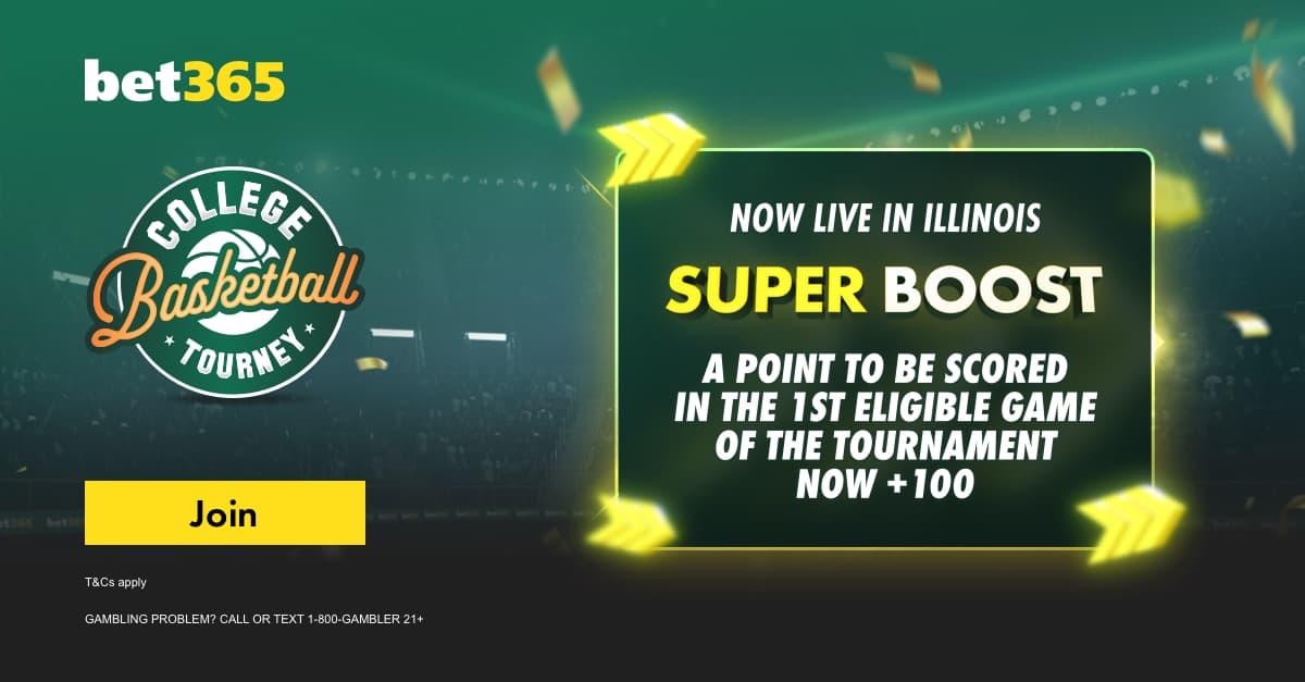 Plus, bet365 is rolling out an Illinois-exclusive Super Boost on 1 point to be scored in the first eligible game of the Men's College Basketball Tournament at +100!